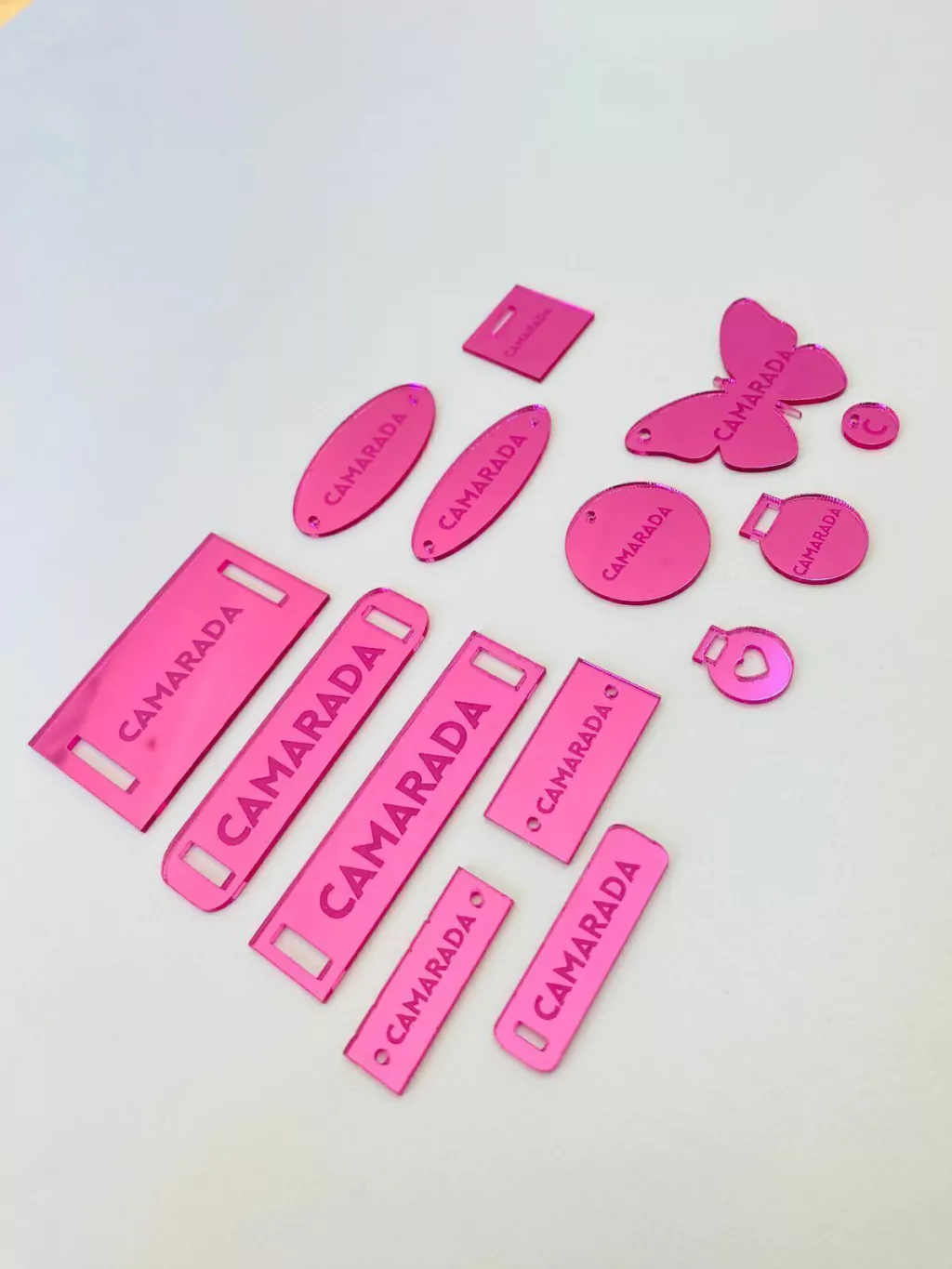 Descubre nuestro dije acrílico espejo de 1.6/2 mm, ideal para realzar la identidad de tu emprendimiento. Este pack incluye dijes del mismo diseño, color y medida, garantizando una presentación uniforme y elegante.
