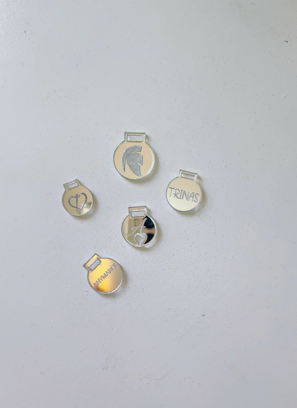 Dale un toque distintivo a tu marca con nuestras etiquetas de acrílico espejo plata de 2 mm, ideales para cualquier emprendimiento. Este pack incluye etiquetas del mismo diseño, color y medida, perfectas para destacar tu identidad de manera elegante. ?
