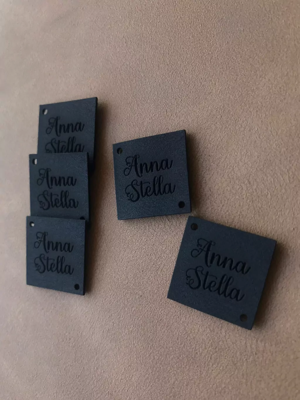 Etiqueta rcuadrada de cuero PU grabada personalizada.